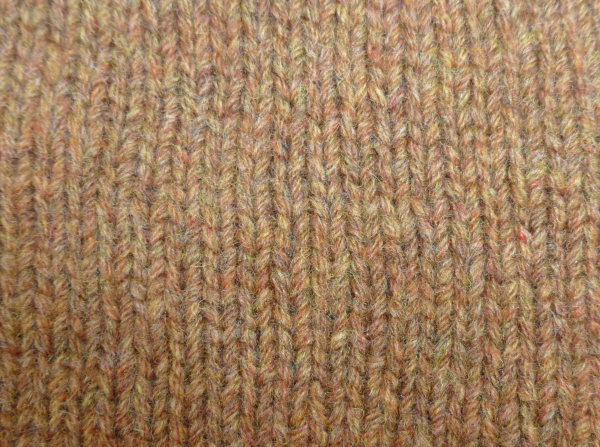 Und dann liegt hier noch eine Maschenprobe des Noble Garns, das ja aus 95 % Geelong und 5 % Kashmir besteht. Ich habe die Farbe Cidre ausprobiert und ihr seht auf dem Bild, dass auch das Noble Garn ganz toll meliert ist – auch wenn Cidre jetzt nicht unbedingt ein Projekt werden wird (auch hier empfiehlt es sich tatsächlich, eine Farbkarte zu bestellen, am Bildschirm sehen die Farben einfach anders aus).