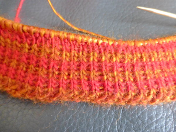 komplizierten Muster, um einen netten Effekt zu bekommen: 1 re – 1 li, „mindless“ vor sich hingestrickt bringen schon ein schönes Ergebnis. Einziger Wermutstropfen: wenn ähnliche Farben aufeinandertreffen, ergeben sich Passagen, in denen sich nichts bewegt. Nun sitze ich also beim Stricken gespannt vor den beiden Zauberbällen und hoffe, dass dies nicht so oft passiert.