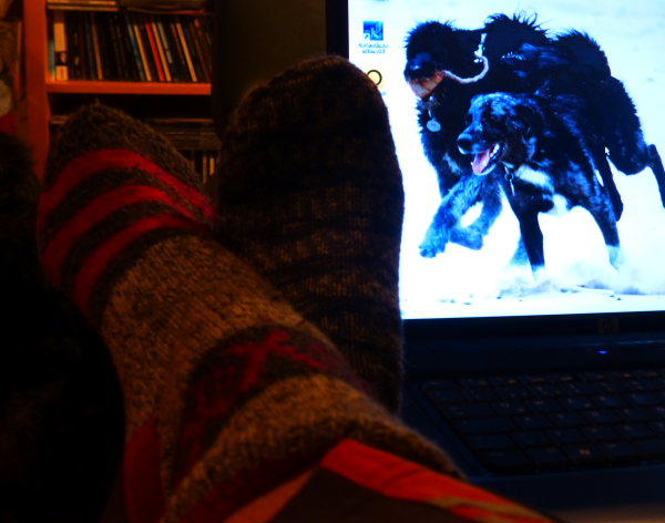 ich glaube, das Bild ist nicht so gut, wenn Du meinst, es sei der fernseher, denn es soll eigentlich, neben den Stricksocken, meinen Laptop zeigen mit einem Bild der Hundejungs… Muss ich vielleicht noch eimal eines bei besseren Lichtverhältnissen knipsen…