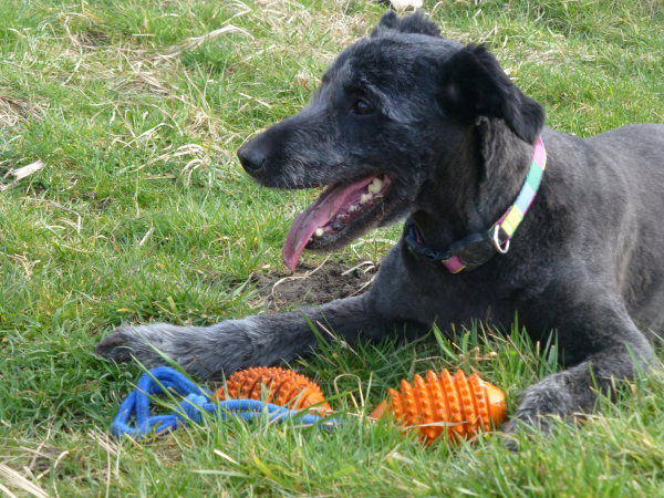 Und irgendwann kam dann der Kumpel Linus, ein Bordercollie-Mix aus Irland, hinzu und nun sind sie manchmal ein ziemlich verschworener Haufen mit schnellen Absprachen untereinander, einer genauen Ordnung beim Spielen – es müssen immer erst BEIDE Spielzeuge wieder gefunden werden, also ist es sinnvoll, sich gegenseitig zu helfen und anzuzeigen, wo das vermisste Spielzeug liegt – manchmal aber auch ein ziemlich zerstrittener Haufen, vor allem, wenn sie müde sind.