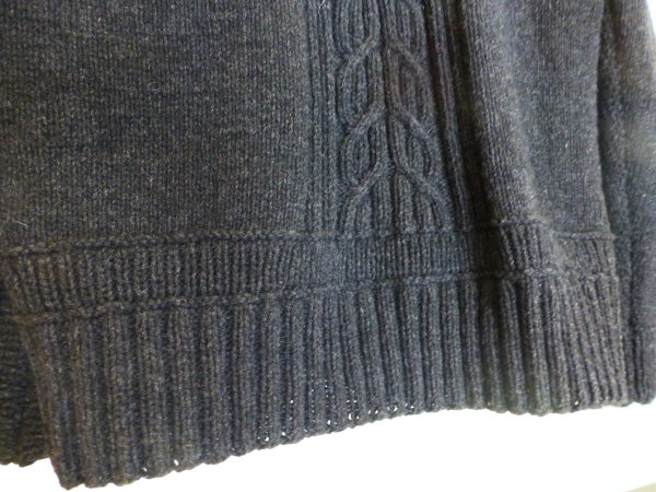Das kommt davon , wenn man, weil sie so lästig ist, eine richtige Maschenprobe schludert. Und wenn dann noch das Garn natürlich überhaupt nicht zur Maschenprobe der Vorlage passt, also alles schön umgerechnet werden muss, dann hat man schon mal umfangreichere Schwierigkeiten. Und da in diesem Muster, das ansonsten gut und leicht nachvollzuiehbar erklärt ist, eine Zeichnung des Schnittes mit Maßen fehlte, musste ich noch viel mehr rechnen, weil ich mir aus der Anleitung und den entsprechenden Zu- und Abnahmen, unter Zurhilfenahme der Maschenprobe, erst einmal den Schnitt der Jacke erschließen musste. (Gut, dass es im Zahlenraum bis 50 mit der Rechnerei noch ganz gut klappt :-))