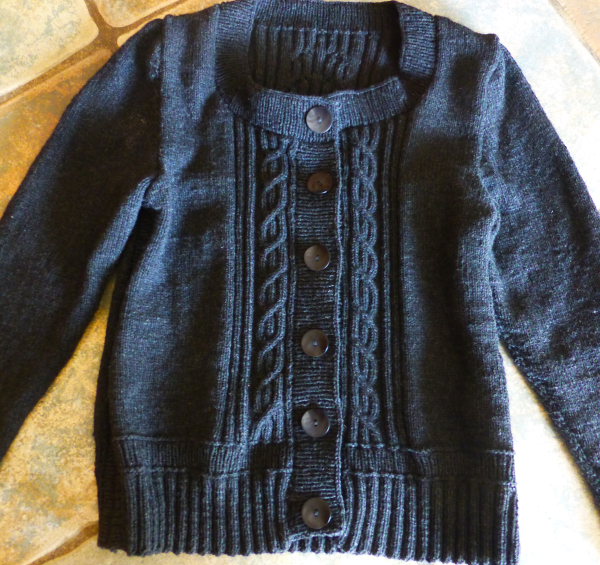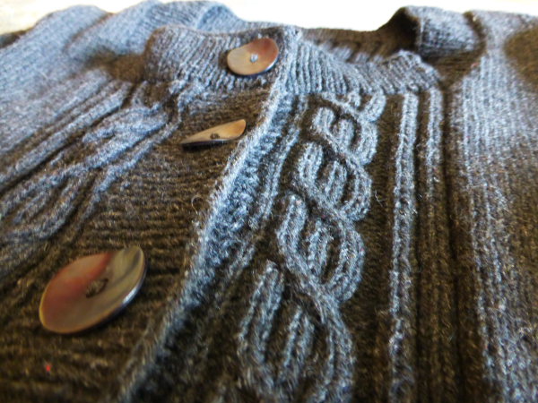 Besonders gut gefällt mir das doppelte Bündchen – es gibt in der Anleitung auch noch eine längere Version, bei der dann besser zu erkennen ist, dass die Jacke Anleihen der Mode aus den 1920er Jahren nimmt – , das verzopfte Muster (ganz einfach, wenn man es einmal raus hat) und der schöne weite Ausschnitt: Von mir aus kann es also gerne noch einmal kühler werden, damit das Jäckle zum Trageinsatz kommen kann :-).
