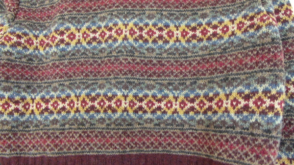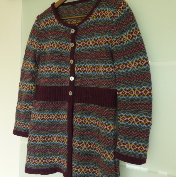 Trotzdem gibt es auch etwas zu mäkeln: noch einmal würde ich den breiten Bündchenstreifen nicht stricken, denn dadurch wird eine Farbe, hier das Rot, sehr donminant.