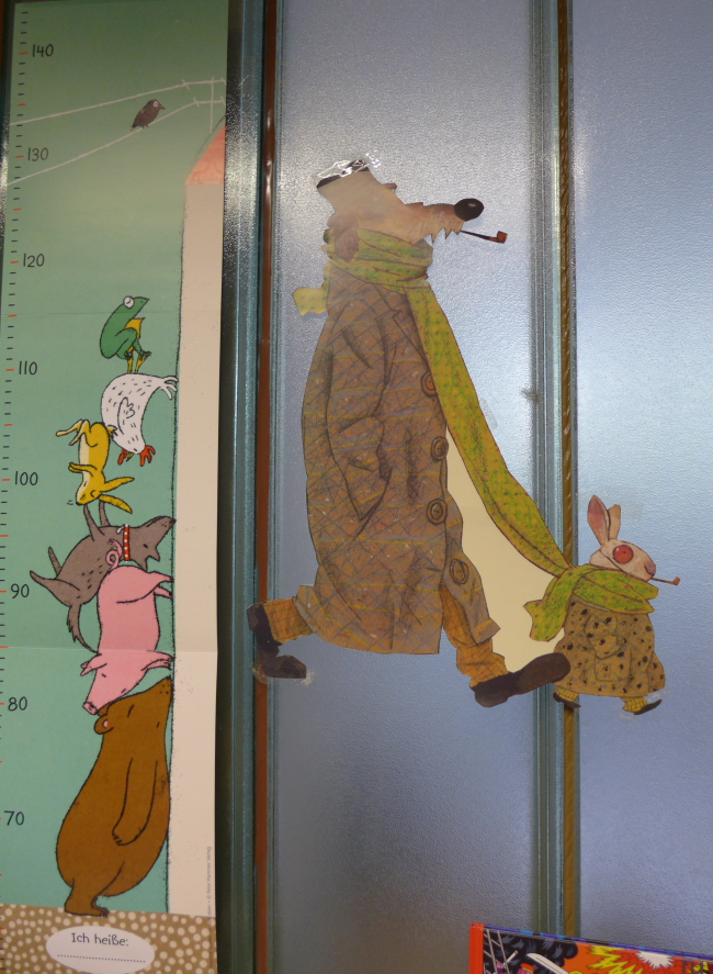 Zweieinhalb Stunden vergingen uns Besucherinnen wie im Flug und von den vielen ausgestellten Büchern und den netten Gastgeberinnen konnten wir uns nur ganz schwer trennen. Immerhin haben uns die Verlagsfrauen noch eine Erinnerung mitgegeben und so hängt nun der Maulwurf mit der wunderlichen Kopfbedeckung an unserer Badezimmertür. Da gefällt er uns auch viel besser als sein reales Pendant, das über den Winter unserem Garten – nicht unbedingt nach unseren Wünschen!- ungestaltet hat.